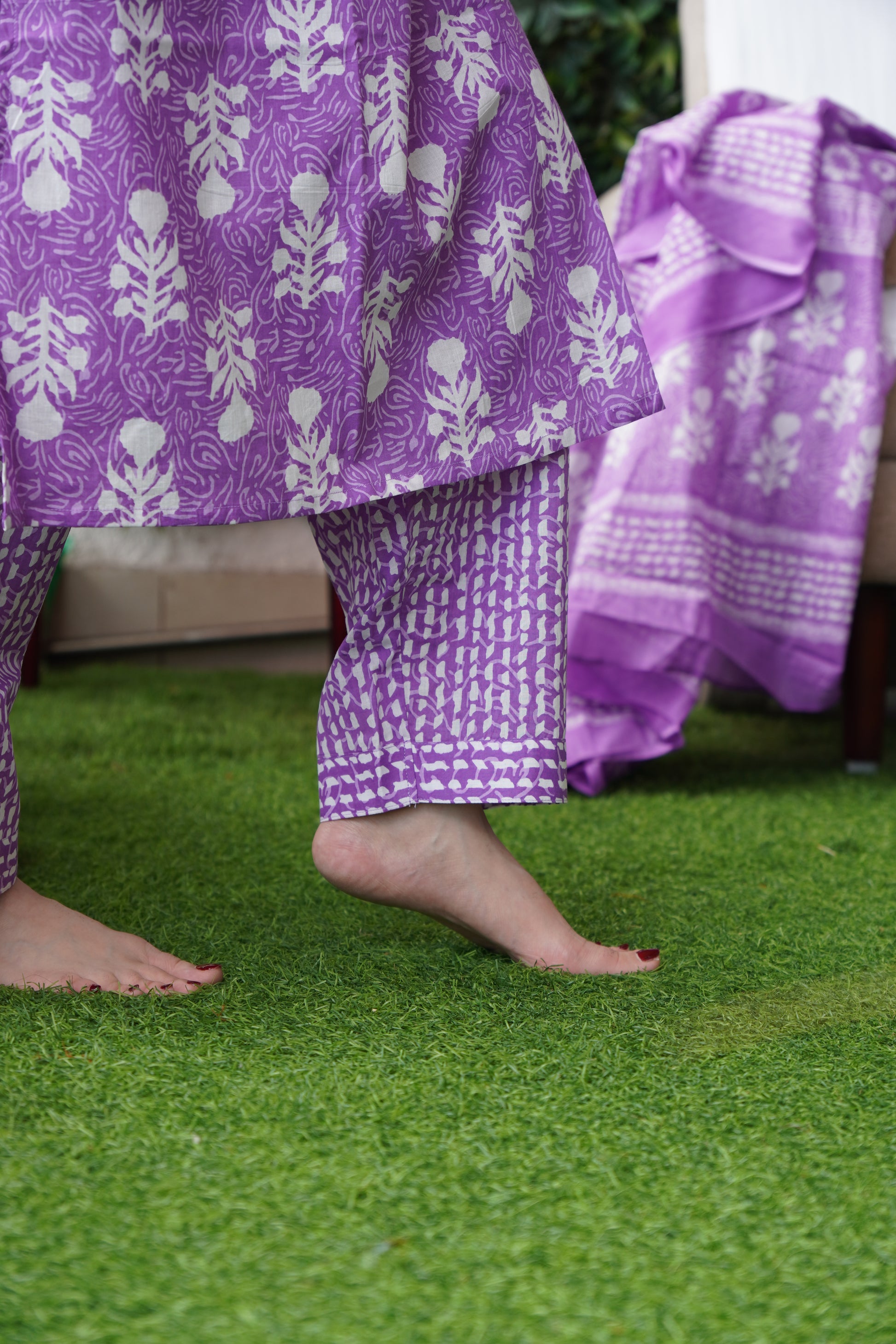 This Floral Purple Cotton Kurta Set with Dupatta combines traditional elegance with comfort. Crafted from breathable cotton, the kurta features a delicate floral pattern that adds subtle charm. The matching dupatta complements the ensemble, making it versatile for both casual and semi-formal occasions. Ideal for warm weather, this set ensures ease of wear without compromising style.