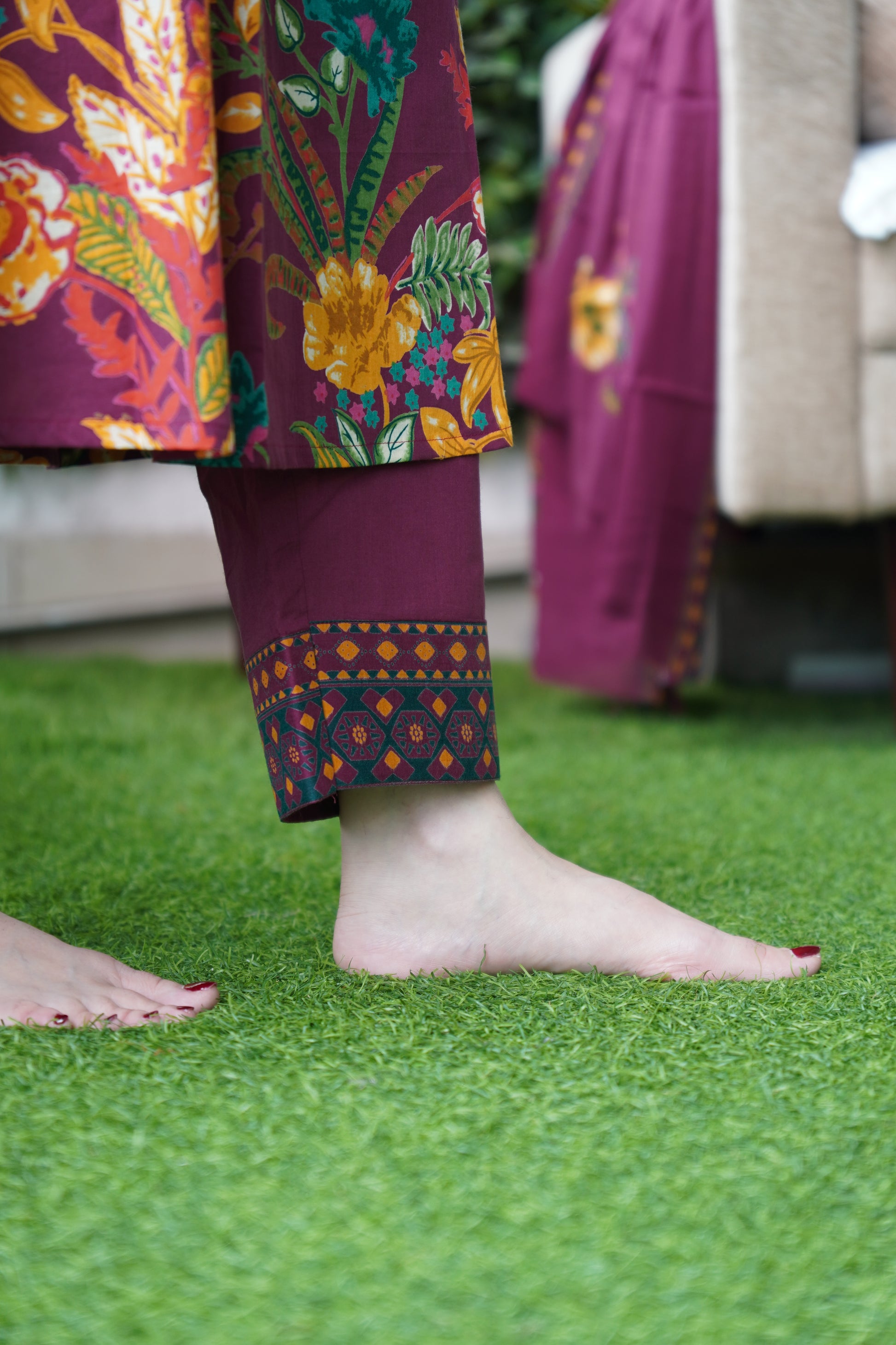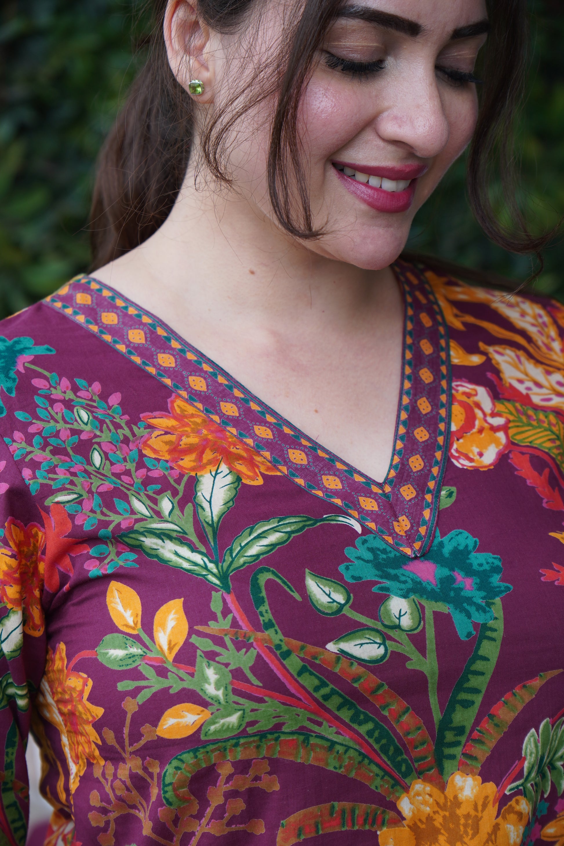 Saacha Florina Wine Red Cotton Kurti Set With Dupatta